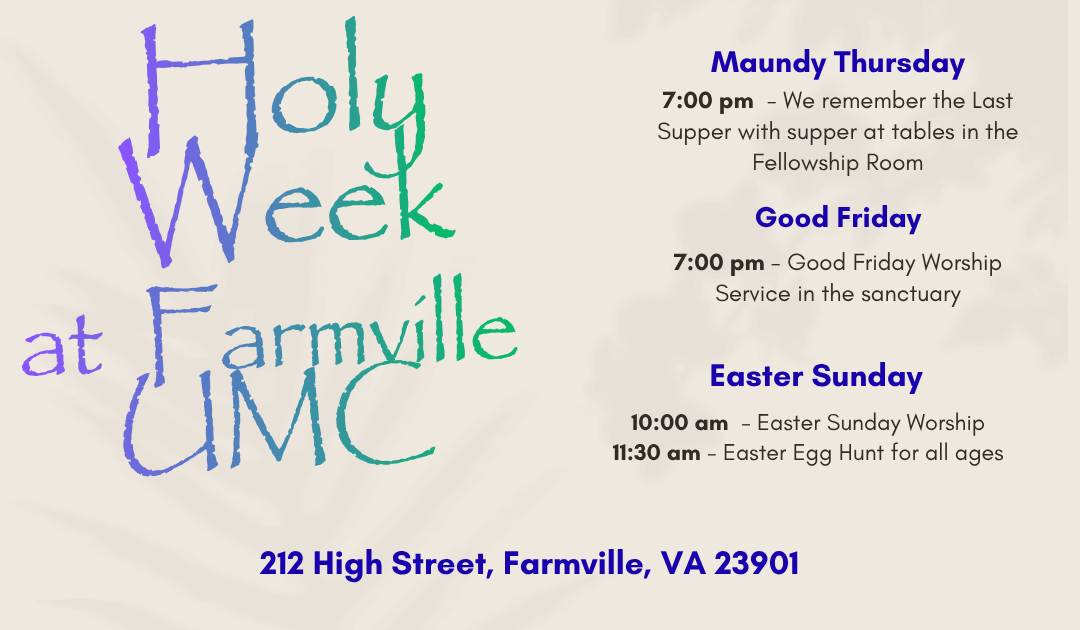 © 2020 Farmville United Methodist Church | Website by Letterpress Communications