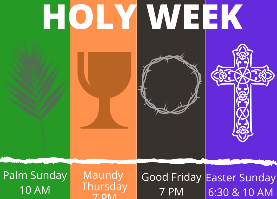 We look forward to seeing you each Sunday worship at 10 am, as well as our special holiday worship events set during Holy week.
